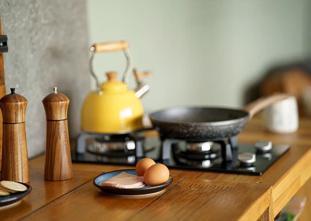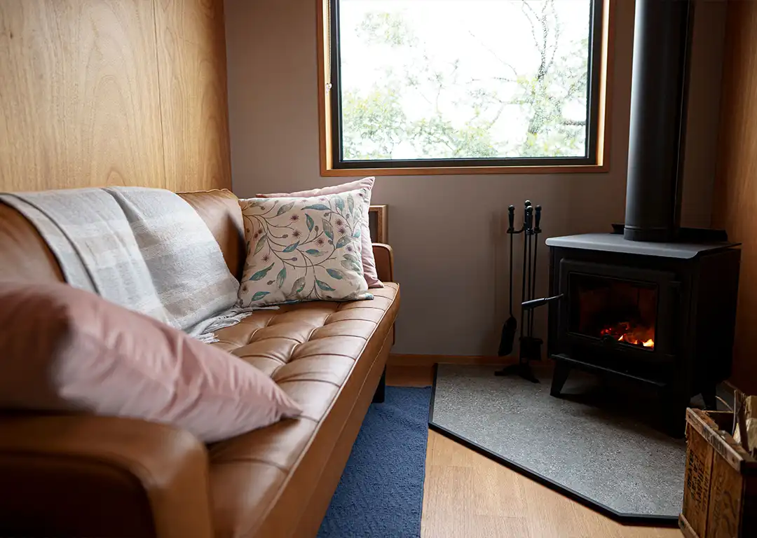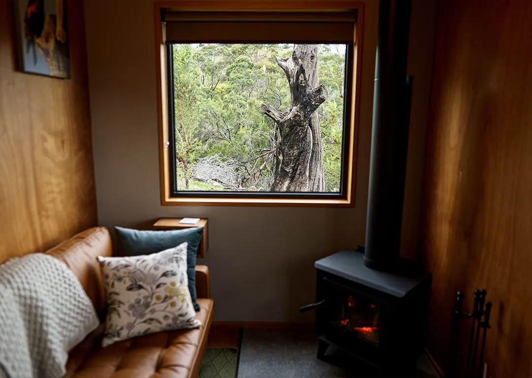 Luxury awaits you in the cocoon of a Tasmanian timber bedhead and lush French linens, accompanied by mood lighting that soothes the senses. An ensuite bathroom, a fully equipped kitchen, and a cozy couch nestled beside a toasty warm wood heater are just some creature comforts that await you.