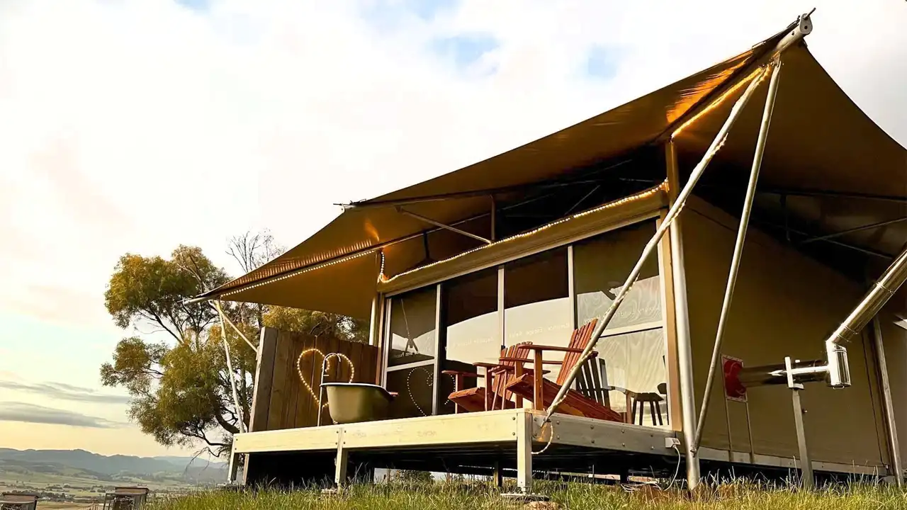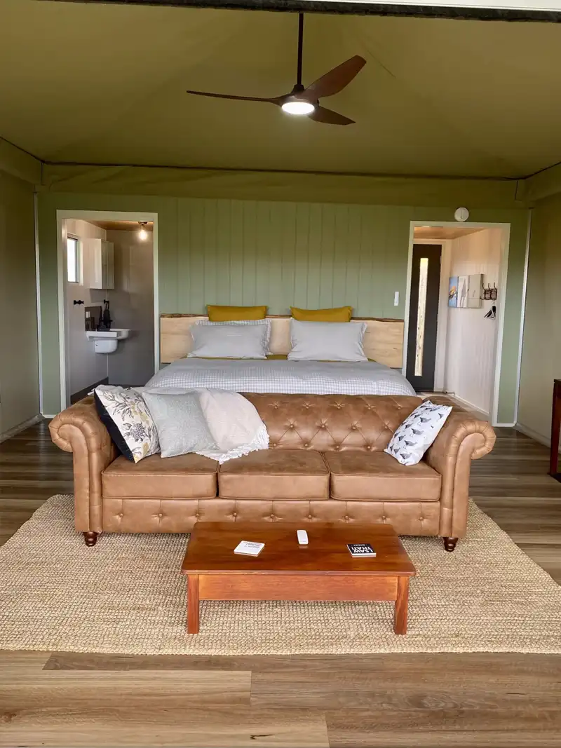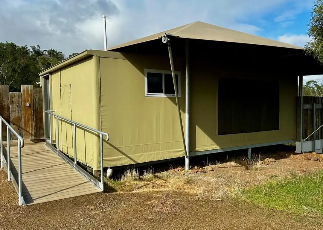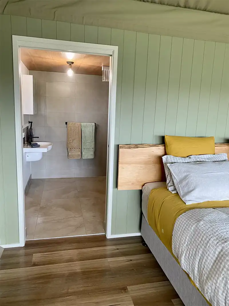 The glamping tent is fully accessible so everyone can enjoy the heavenly space. Featuring wheelchair-friendly interiors, an accessible bathroom and easy access, the tent complies with Australian Disability Standards, ensuring everyone can indulge in the peaceful environment and have a relaxing stay.