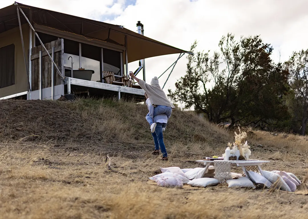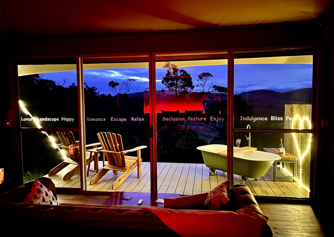 The glamping tent is fully accessible so everyone can enjoy the heavenly space. Featuring wheelchair-friendly interiors, an accessible bathroom and easy access, the tent complies with Australian Disability Standards, ensuring everyone can indulge in the peaceful environment and have a relaxing stay.
